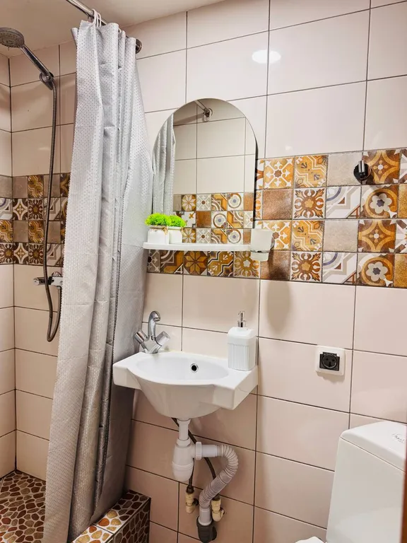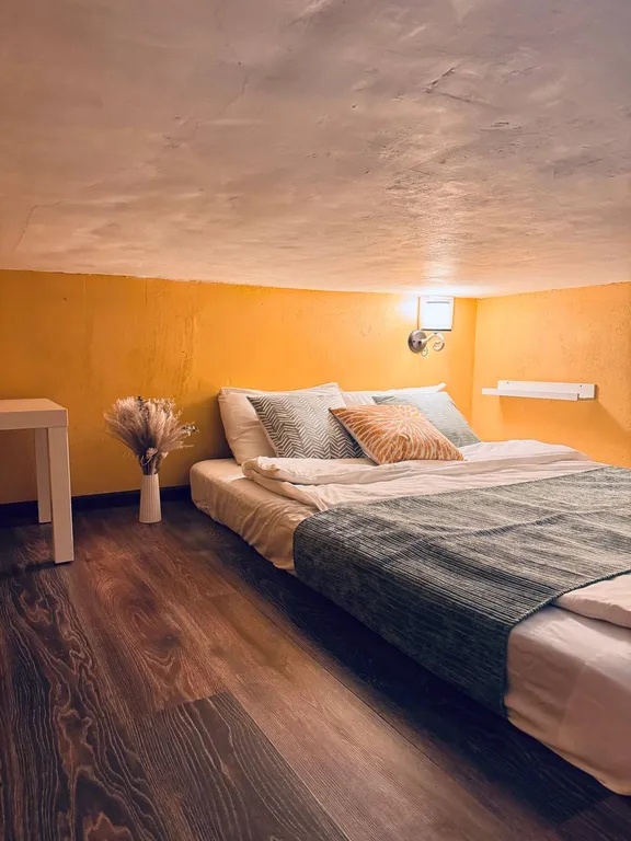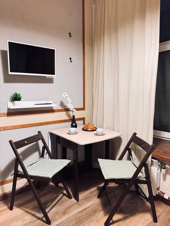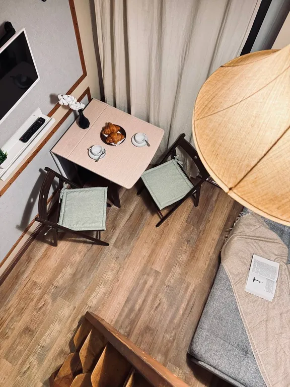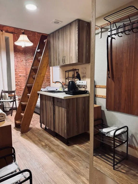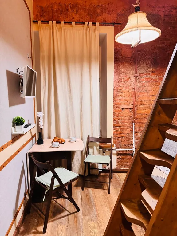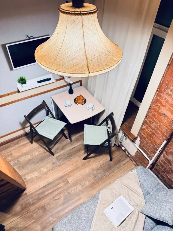 Двухуровневая стильная студия! В студии есть все необходимое для комфортного проживания в деловой поездке, активному туристу или семейного выходного дня: постельное белье, полотенца, собственные душ и туалет, фен, электроплита, мини-кухня, холодильник, посуда, телевизор, вентилятор, обогреватель, wi-fi.